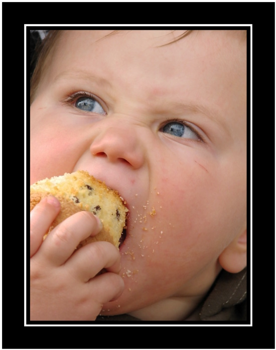 Babymann läßt sich seinen Geburtstagsmuffin munden