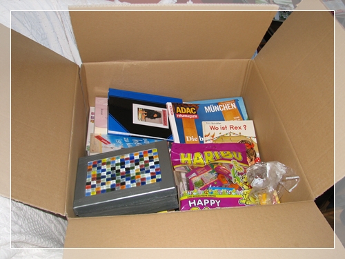 Leider hab ich wohl vor lauter Begeisterung total vergessen mir eine Liste anzufertigen, was Strubbel denn nun Alles dabei hatte als er hier ankam!! Was wir entnommen haben, bzw. was wir alles wieder mitgeschickt haben ist im Logbuch natürlich alles fein säuberlich notiert!! Und somit hoffe ich, dass Pat eine Liste bloggen kann was Strubbel denn nun in seinem (mittlerweile RIESENpaket) alles so beherbergt!! Auf alle Fälle neu im Paket ist unter anderem