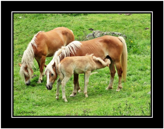 Am hintersten Ende vom Ultental/Südtirol bin ich auf diese Idylle gestoßen. Jede Menge freilaufender Haflinger und viele Stuten mit ihren Fohlen. Da kam mir doch sofort die Idee das für die >>>Tierische Nähe<<< von >>>Angie<<< mitzunehmen.  Als wir dann aus dem Urlaub zurückkamen hatten wir dieses Bild auch direkt vor der Haustür. Gleich vierfach ;-)
