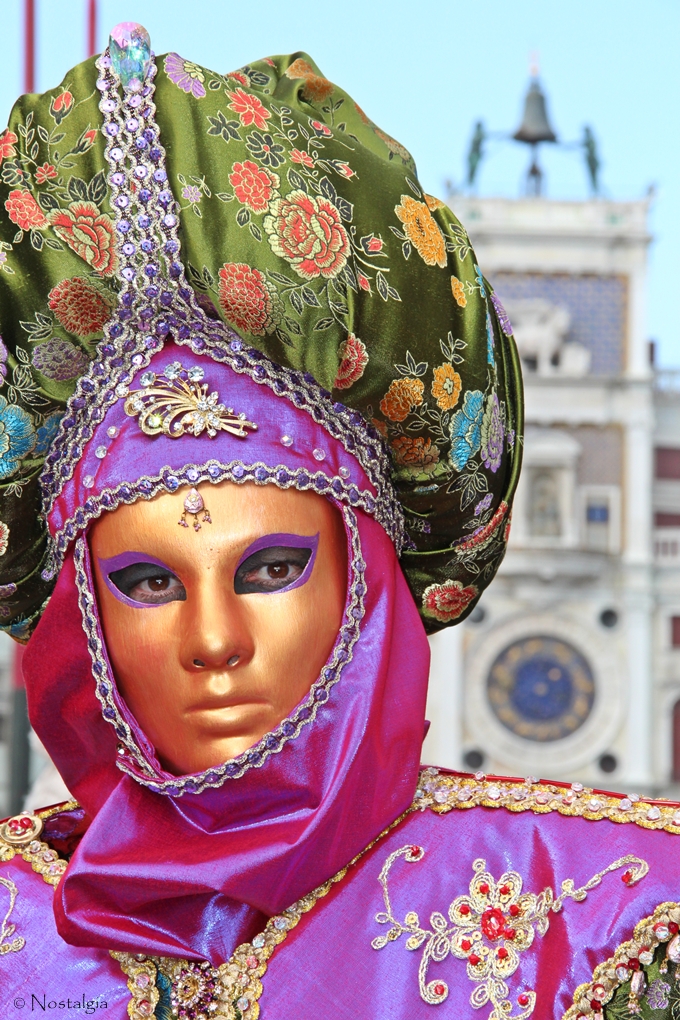 Es sind ja nicht nur alleine die Masken die einfach atemberaubend sind, es ist das Gesamtkunstwerk Venedig mit seiner wunderschönen Kulisse. So ist auch der Hintergrund immer einen Extrablick wert. Hier der Torre dell'Orologio am Markusplatz den ich auch schon mal bei Frau Waldspechts TickTack-Projekt gezeigt habe.