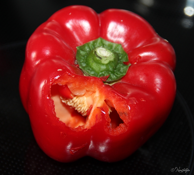 Ja natürlich war für das Loch im Foto unten kein Meteorit veranwortlich. Aber durch die Vorkommnisse in Tscheljabinsk musste ich zwangsläufig dran denken als ich die malträtierte Paprika sah ;-)