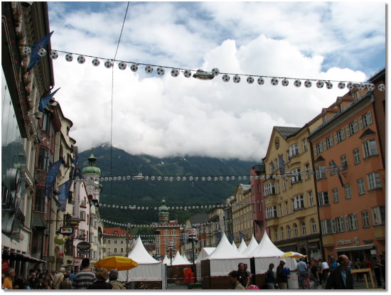 Und nachdem es auch an diesem Tag meiner Mama nicht so gut ging, haben wir uns einfach am Platz in einem Café für längere Zeit festgesetzt und das Treiben beobachtet. Ganz speziell das Hochzeitstreiben. Im goldenen Dachl ist ein Standesamt und Samstag ist dort wohl Großkampftag *gg*. Innerhalb kürzester Zeit haben wir die unterschiedlichsten Bräute und Gesellschaften erlebt incl. den Hochzeitsständchen der Schützenkapelle und der Polizeimusik Innsbruck.