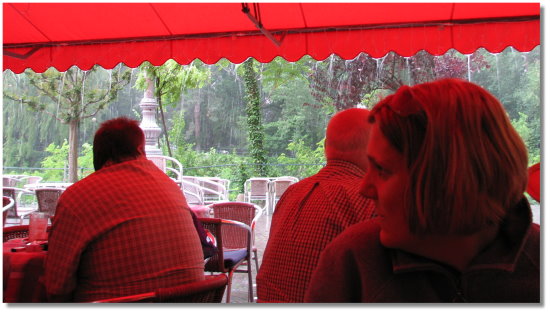 Und wir schafften doch tatsächlich noch einen Rundgang durch die Laubengasse und zurück zur Promenade bevor wir von einem sintflutartigen Gewitter überrascht wurden und nur noch die Flucht unter die Markisen eines Cafés antraten. Dort saßen wir und hatten trockene Köpfe. Doch wir hatten nasse Füsse und Schuhe. Die Wassermengen mussten ja irgendwohin *gg* Es wollte nicht aufhören zu regnen und wir waren auch kleidungstechnisch nicht auf Sauwetter aus. Und entschieden wir wieder spontan: Zurück zum Parkhaus und zurück zum Brenner. Da waren wir dann bis auf die Haut patschnass *gg*