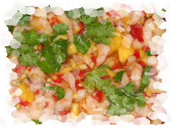 Schon die Vorspeise die meine Mutter kredenzte hatte es in sich. Garnelensalat mit Mango. Hört sich lecker und harmlos an, aber man beachte die Farbe Rot in den Zutaten.  Feinster thailändischer Chili ;-)