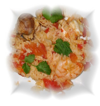 Arroz de marisco - Reis mit Meeresfrüchten hat er sich ausgesucht. Ähnlich einem Risotto mitCalamare, Scampi, Muscheln, Seeteufel. Hmmmmmmmmmmm....